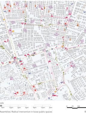 The City As Found celebrates events as the backbone of urban organisation. Driven by the premise that the material city grows around events (and not the other way!), the studio observed and identified the urban context as a series of events in time. Initial investigations used rigorous mapping, drawing, and imaging to identify the changing character of spaces that seamlessly tie together different actors. These time-cycles were then layered against an analysis of the structure and organisation of built morphologies, to generate a frame for exploration.
