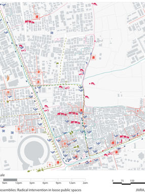 The sites of the studio represent typical conditions across the city of Ahmedabad. All include residential neighbourhoods alongside other land uses – industrial (Rakhiyal), institutional (Memnagar), mixed industrial, institutional and heritage (Shahibaug), ecological (Isanpur), and commercial (Vasna). Groups of 2 students analysed each site.