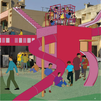 Ahmedabad is full of vacant lands, both public and private, whose surreptitious adoption by tactical citizens supplements the city’s dearth of accessible open space. Contested bans on planned land uses, legal disputes, and uncoordinated developments produce an abundance of loosely organised vague space within the city. Sitting alongside high densities, much is temporarily occupied while waiting for its ‘official’ function, with activities vital for the social life of the city. (Cricket! Driving Practice! Festivals!) But the condition is temporary; eventually buildings replace the activated space, and actors must move. What if, instead of erasure, new programs were imagined alongside current occupations? Though they are publicly owned, these open lands rarely have public access.